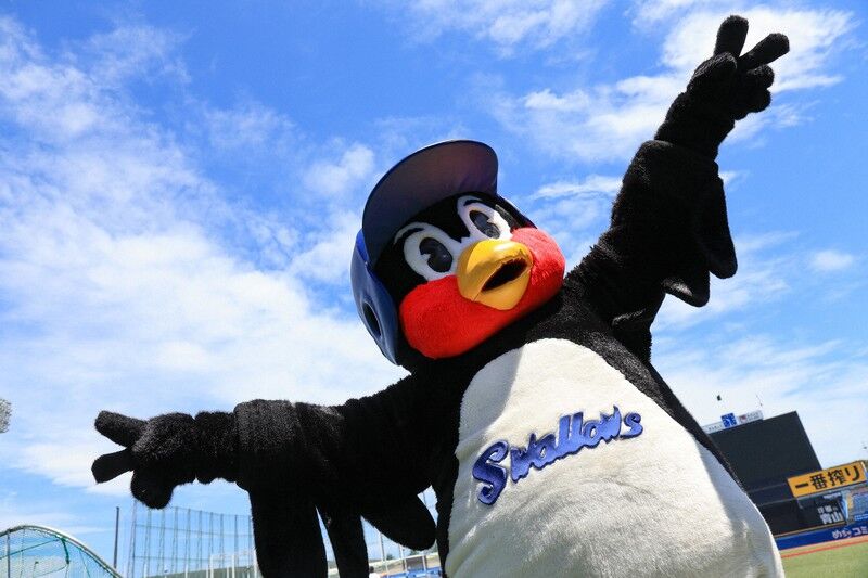 | つば九郎 つば九郎(つばくろう)は、日本プロ野球・東京ヤクルトスワローズのマスコットキャラクター。 チーム名にもあるように、ツバメをモチーフとしたキャラクター。名前の由来は、ツバメの古称「つばくろ」と、「鍔迫り合いに強く、苦労(九郎)しながら接戦をものにする」という意味がこめられている。ただし、つば九郎